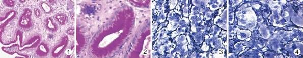 格林 GS 组织切片染色试剂在多种特殊染色中的染色质量和传统病理染色试剂相同,完全可以替代传统病理染色 试剂,见图 1 ~ 4。