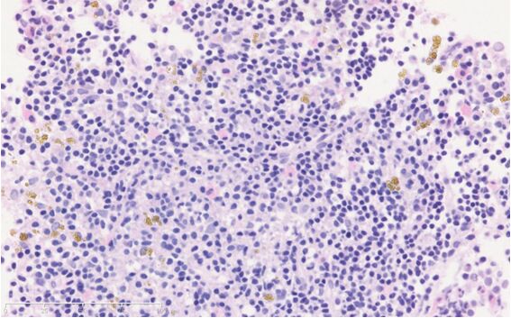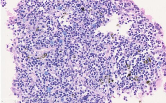 图C:病例二(HE-天青II染色)显示嗜碱性粒细胞